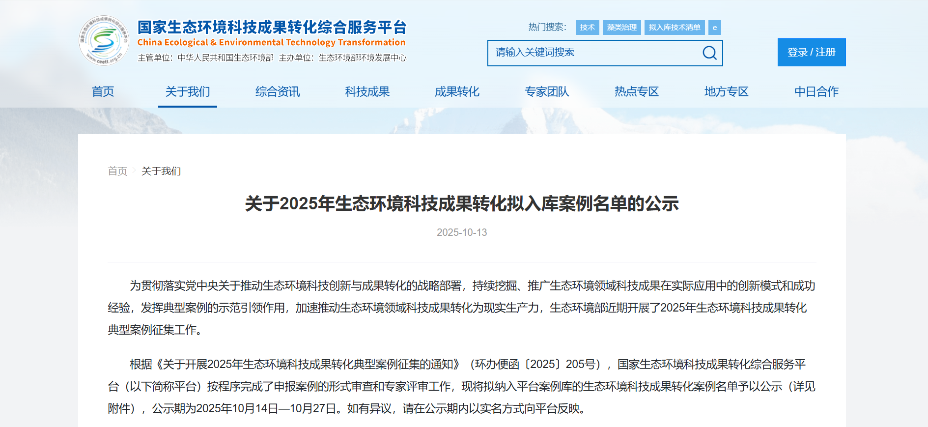 此次征集工作,由生态环境部发起,是为深入贯彻习近平生态文明思想,全面落实党中央关于推动生态环境科技创新与成果转化的战略部署,持续挖掘、推广生态环境领域科技成果在实际应用中的创新模式和成功经验,发挥典型案例的示范引领作用,加速推动生态环境科技成果转化为现实生产力,服务生态环境质量持续改善和经济社会高质量发展。面向社会征集具有创新性、实效性、可复制的生态环境科技成果转化典型案例。