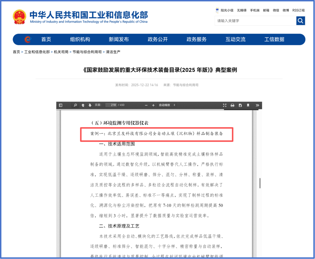 新闻回顾点击:入选国家重大目录!兰友科技全自动土壤样品制备系统引领环保装备新高度