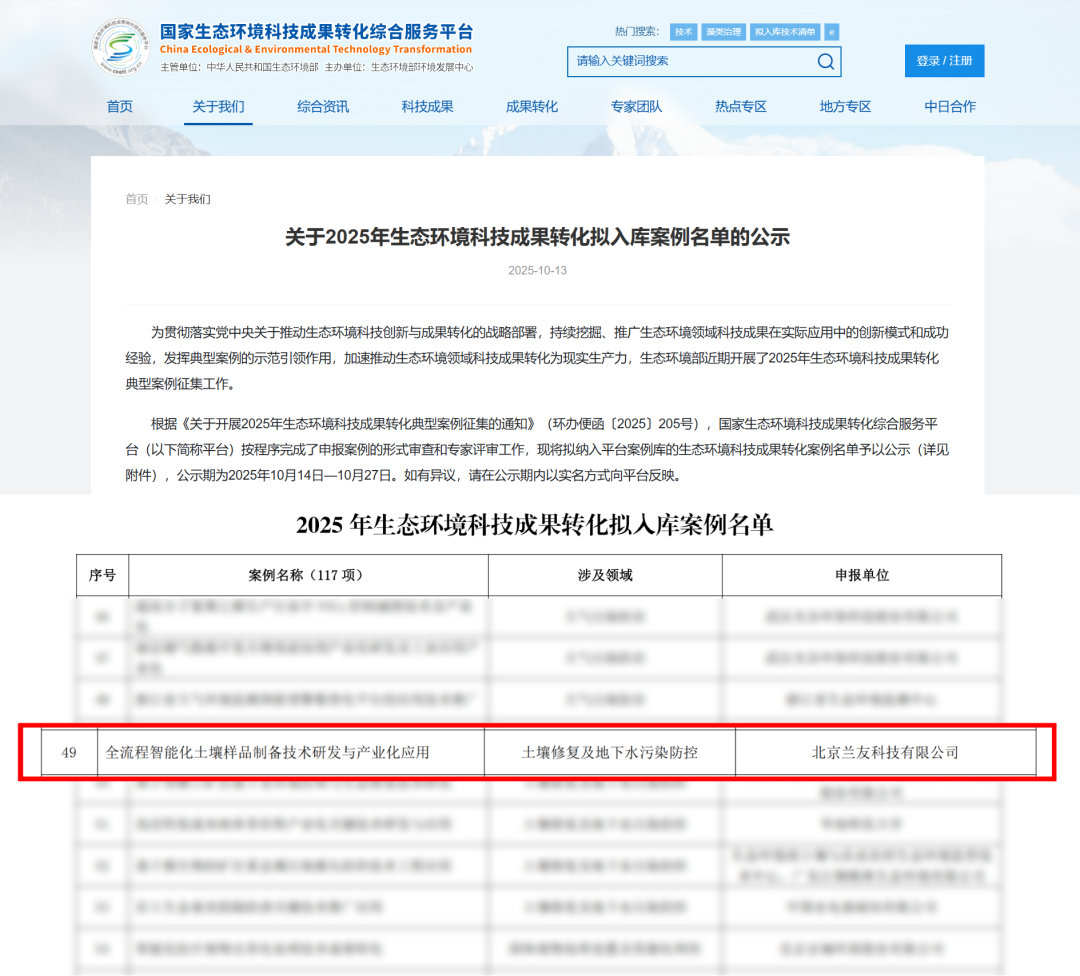 新闻回顾点击:兰友科技智能化土壤样品制备技术入选国家生态环境科技成果转化案例库