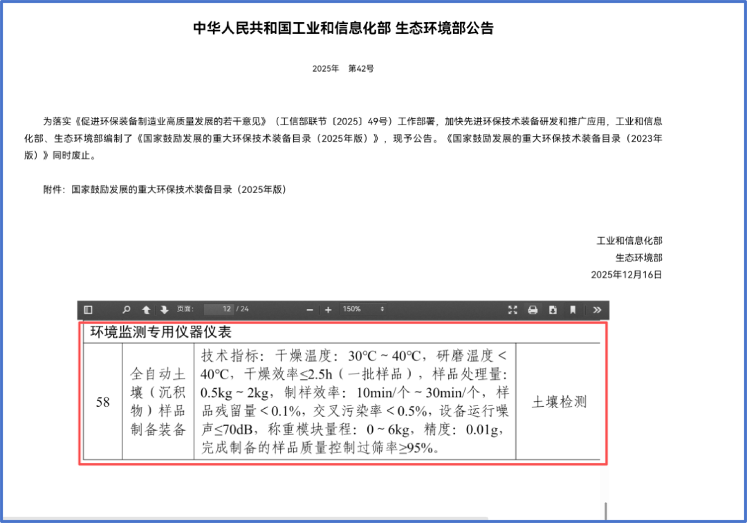 FASP全自动土壤(沉积物)样品制备系统入选工信部、生态环境部联合发布的《国家鼓励发展的重大环保技术装备目录(2025年版)》,或将成为十五五现代化生态环境监测体系重大核心装备!